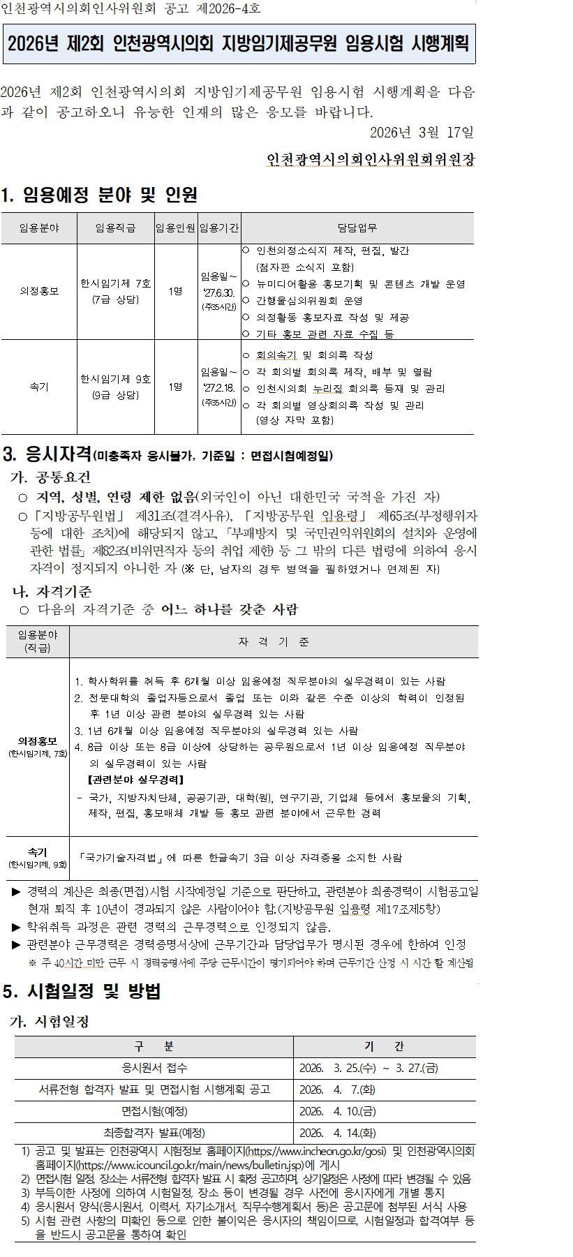 - (°ø°í¹®)_2026³â_Á¦2ȸ_ÀÎõ±¤¿ª½ÃÀÇȸ_Áö¹æÀÓ±âÁ¦°ø¹«¿ø_ä¿ë½ÃÇè_½ÃÇà°èȹ.hwp(82kb)